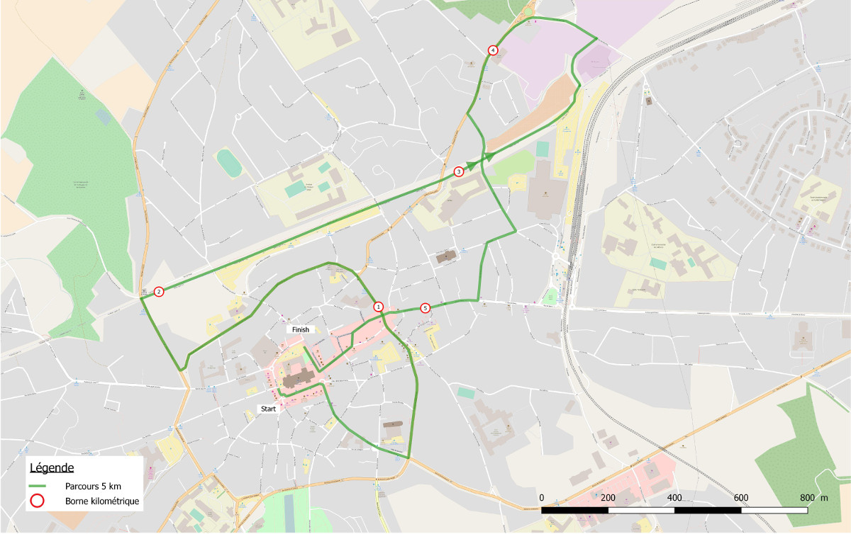 Grand’Place (départ côté « Brasserie des Arts ») – Rue de Saintes – Boulevard Charles Van Pee – Place Emile Delalieux – Boulevard Fleur de Lys – Boulevard des Archers – Boulevard des Arbalétriers – Rue des Combattants – RAVEL - Traversée du Parking St Rock - RAVEL - Bretelle d'accès parking SNCB - Rue des Déportés – Place des Déportés – Chaussée de Bruxelles – Chemin Maxile – Rue Ferdinand Delcoix – Avenue de Burlet – Rue Général Leman – Rue de Namur - Grand'Place (arrivée).